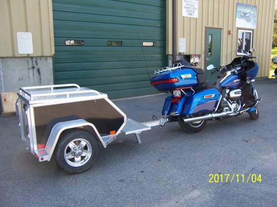 Aluma Trailers. Tow behind. (weighs 200 lbs.) 45"L x 26.5"W x 21.5"D Torsion axle, 12" Radials w/Aluminum wheels, Locking Lid w/Luggage rack, Cooler tray and L.E.D. lights. Includes spare tire and bracket!!