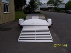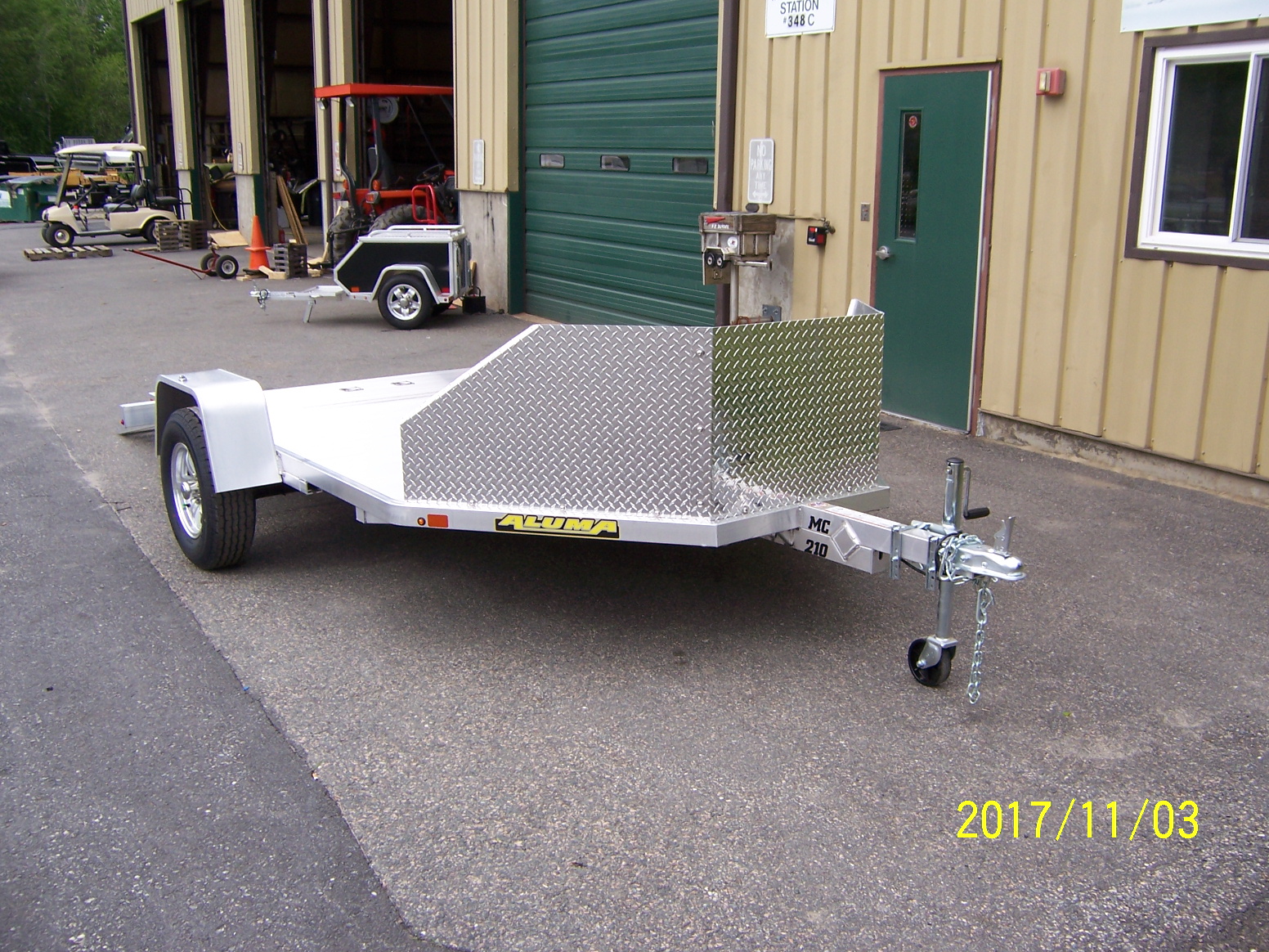 Aluma Trailers. 2 Place motorcycle trailer. 78" x 138", Extruded aluminum floor, 8 SS tie downs, Full width slide under ramp, Rock guard, Torsion axle, 14" Radials w/ Aluminum wheels and L.E.D. lights. CALL FOR PRICING!
