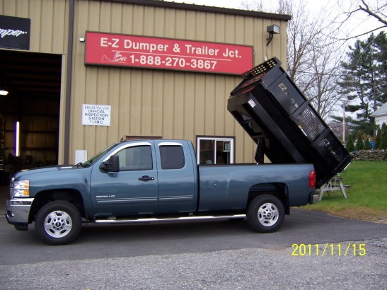 The (ORIGINAL) E-Z Dumper Insert. 2020 Powder coat finish, 6,000 # hoist, power up & down, 2 way tailgate, stake pockets with rub rails. Installs in approx. 90 minutes. Price includes installation and taxes(SHOWN WITH OPTIONAL 20 in. SIDE BOARD KIT $1900.00) CASH/CK SALES. 3% ADDED ON A C/C